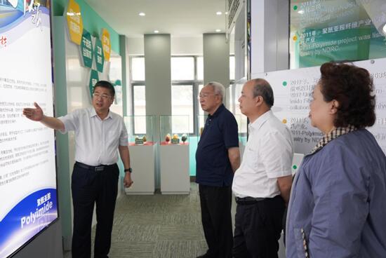 王士華對孫晉良、陳文興院士一行表示熱烈歡迎,并陪同參觀了公司展廳、生產(chǎn)車間以及國家碳纖維復(fù)合材料試驗(yàn)公共服務(wù)平臺。在展廳,王士華詳細(xì)匯報了企業(yè)的發(fā)展歷程、產(chǎn)品功能特色、應(yīng)用領(lǐng)域,以及產(chǎn)品在特種防護(hù)、航空航天等領(lǐng)域應(yīng)用研究進(jìn)展。兩位院士與對奧神新材料公司近幾年快速發(fā)展給予高度評價,充分肯定了奧神新材對我國高性能聚酰亞胺纖維及其后道制品研發(fā)工作作出的突出貢獻(xiàn)。
