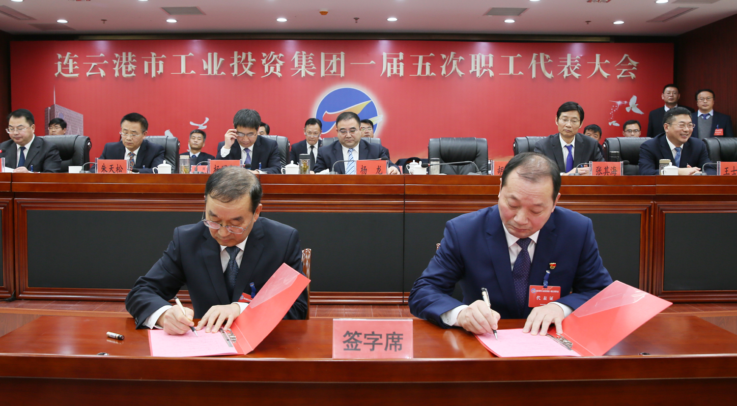 藍(lán)圖繪就,正當(dāng)揚(yáng)帆破浪;重任在肩,更須策馬揚(yáng)鞭。1月14日上午9時(shí),在雄壯的國歌聲中,集團(tuán)公司一屆五次職工代表大會(huì)在總部隆重召開,來自各條戰(zhàn)線的職工代表肩負(fù)全體工投人的重托,齊聚一堂,共商企業(yè)發(fā)展大計(jì)。黨委書記、董事長(zhǎng)楊龍作講話,總經(jīng)理胡建明作工作報(bào)告。黨委副書記戴鴻鳴、工會(huì)主席劉承志分別主持大會(huì)。集團(tuán)公司領(lǐng)導(dǎo)楊國新、張其海、朱天松、王士華、汪群、匡友本、陳如軍在主席臺(tái)前排就座。
