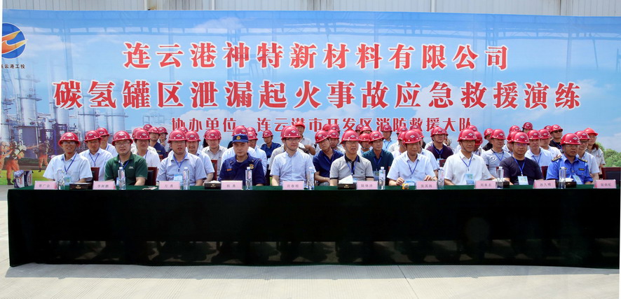 正值全國(guó)“安全生產(chǎn)月”之際, 6月19日上午,集團(tuán)公司在神特新材料公司針對(duì)重要危險(xiǎn)源乙類碳?xì)涔迏^(qū)舉行安全應(yīng)急綜合演練。市國(guó)資委副主任陸體洋,集團(tuán)公司副總經(jīng)理張其海、工會(huì)主席劉承志,市開(kāi)發(fā)區(qū)應(yīng)急管理局局長(zhǎng)許春明觀摩應(yīng)急救援演練。