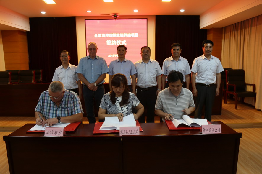 8月7日下午,北歐農(nóng)莊四期生豬養(yǎng)殖項目簽約儀式在灌云縣行政中心舉行。集團公司領(lǐng)導楊龍、胡建明、陳如軍,灌云縣領(lǐng)導朱興波、王慶嘉、張凌云,丹育公司董事勞倫斯·桑德高,連云港北歐農(nóng)莊生豬養(yǎng)殖有限公司首席執(zhí)行官楊林柏等出席簽約儀式。