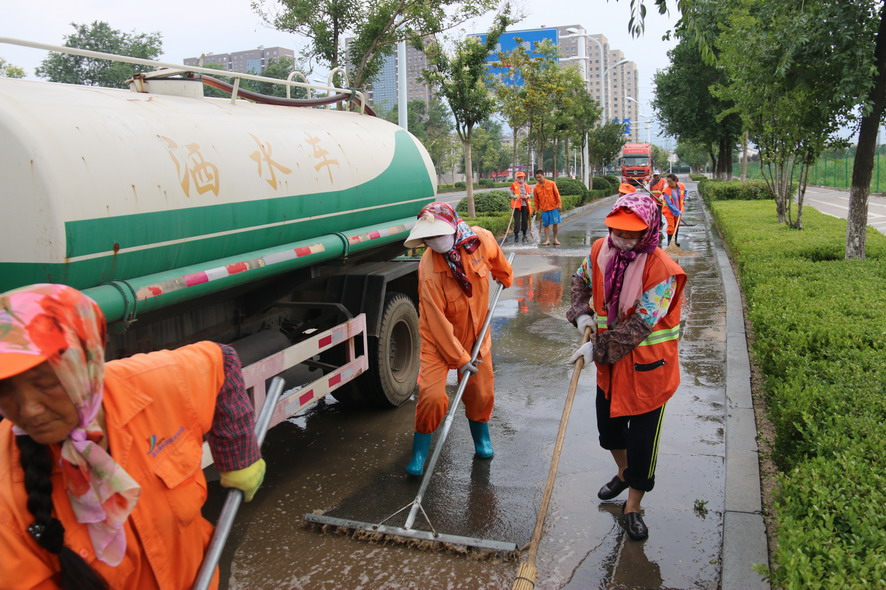 8月19日在火車站廣場及周邊路段,40多名綠化、保潔工人及灑水車、清掃車等全力保障火車站重點地段的環(huán)境衛(wèi)生,為過往旅客提供一個干凈整潔舒心的出行環(huán)境。據(jù)現(xiàn)場負責人龔本國介紹,隨著創(chuàng)衛(wèi)工作力度的進一步加大,開發(fā)區(qū)對我們火車站廣場及周邊路段的環(huán)境衛(wèi)生提出了更高的要求,我們對會泉路商戶門前的綠化進行了補植,種植紅葉石楠等苗木600多平方,每天專門安排一輛灑水車對火車站廣場及周邊路段進行巡回清洗清掃,確保路面干凈無塵土,對廣場站臺、護欄、果皮箱、路燈桿、花壇進行清理擦洗,對下水道進行清掏,蓋板更換維修。為確保創(chuàng)衛(wèi)工作任務高標準高質(zhì)量完成,連日來,綠化養(yǎng)護、環(huán)衛(wèi)保潔工人天天早上6點上班,到晚上10點下班,中午吃飯休息只有一個小時,每天工作10多個小時,為創(chuàng)衛(wèi)工作做了很多實實在在的事情,他們真的很不易,很辛苦,只因有了他們的辛勤勞動、無私奉獻,城市環(huán)境衛(wèi)生才會越來越好。